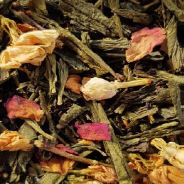 Zutaten: Schwarz Tee, Grüner Tee ,Jasmin Blüten, Rosenblätter, natürliche Aromen